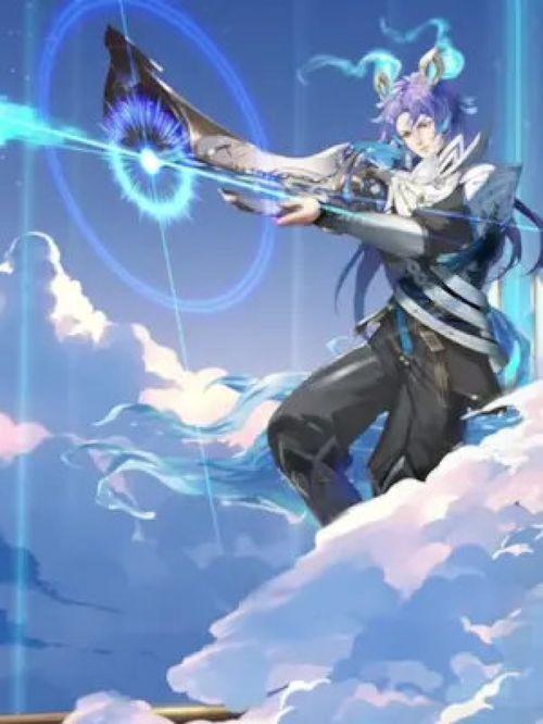 战袍的颜色以金色为主,金色不仅代表着尊贵,还给人一种高贵典雅的感觉。在战袍的边缘,还巧妙地加入了红色和蓝色的线条,使得整体造型更加丰富。百里守约的武器——狙击枪,也被设计成了一把精美的弓箭,弓箭上同样绣满了精美的纹饰,让人不禁感叹设计师的匠心独运。